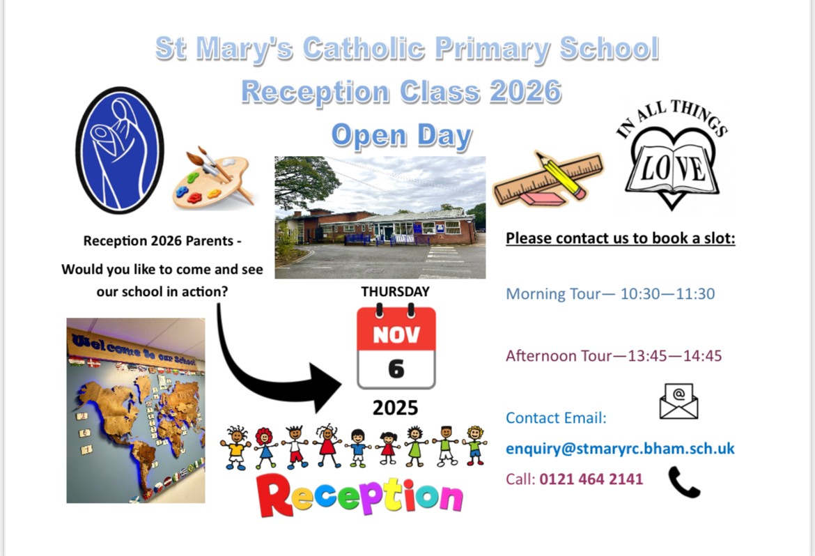 If you are lucky enough to be given a place at our lovely school then please read the below welcome letter and complete the below welcome pack then return it to Mrs Reeson at: enquiry@stmaryrc.bham.sch.uk - We look forward to having some new faces start with us in September.